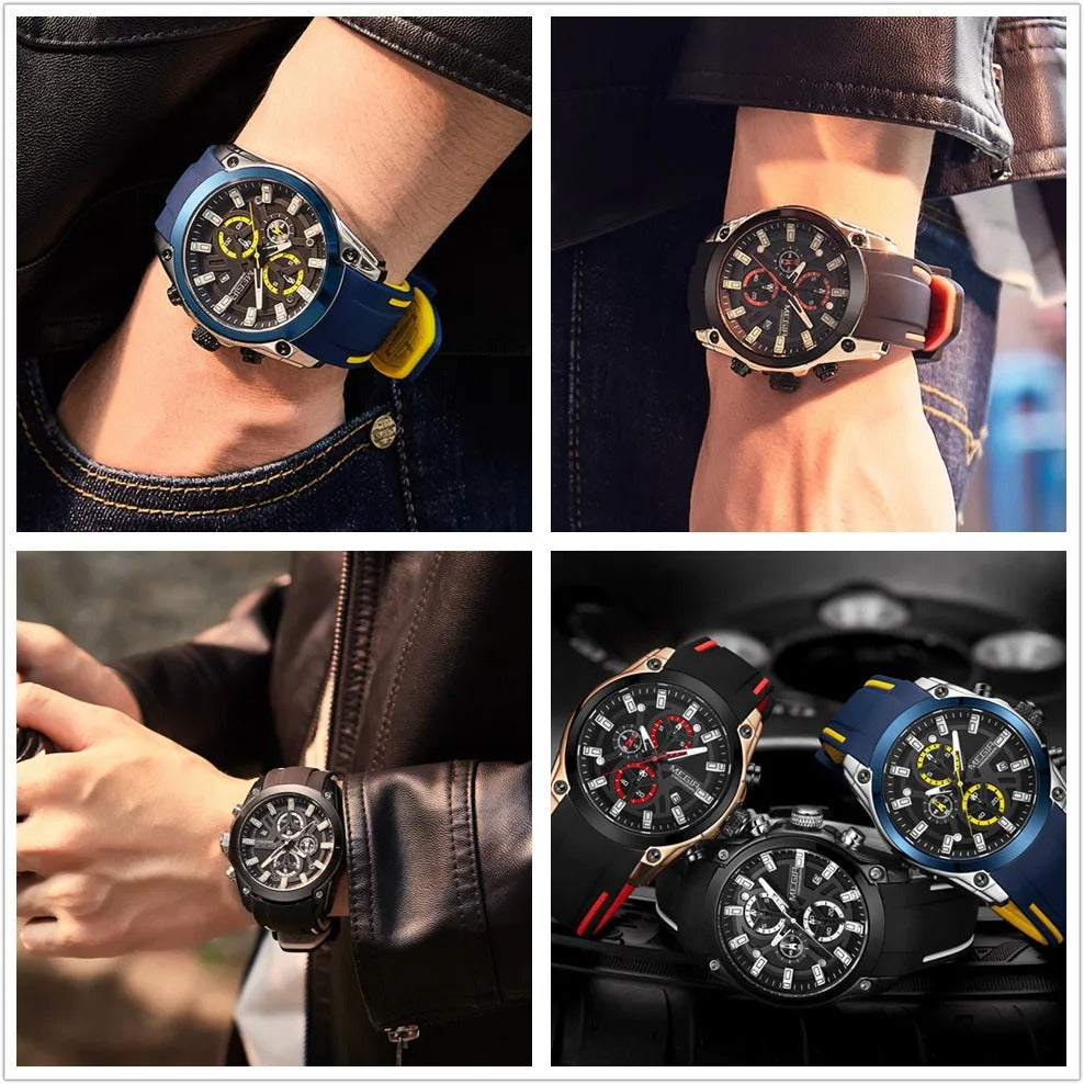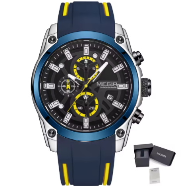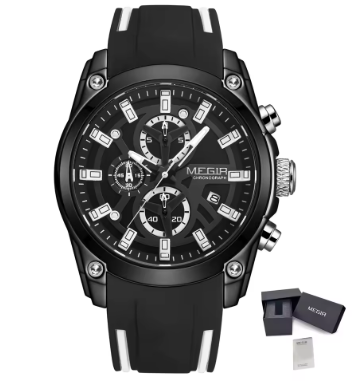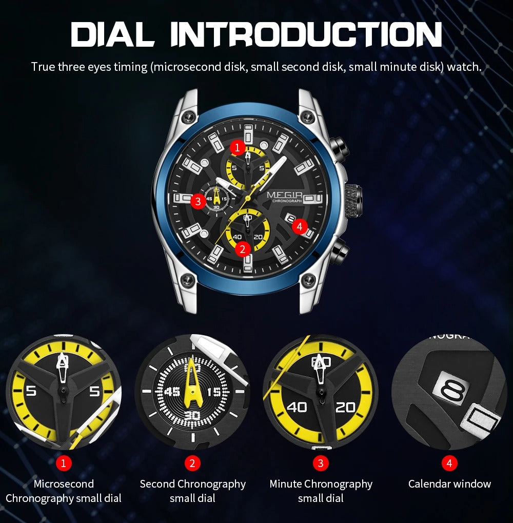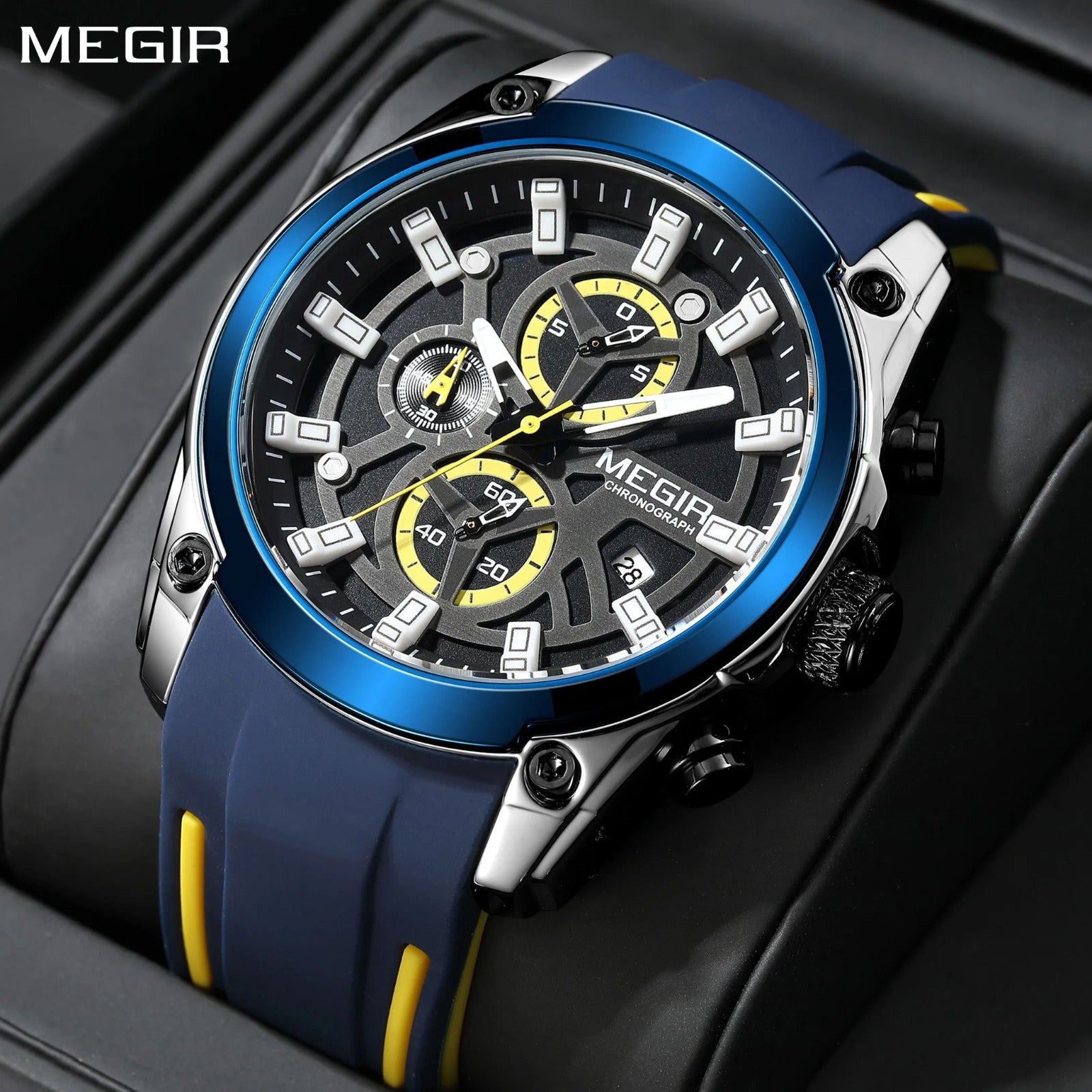 Reloj deportivo MEGIR Original para hombre, reloj cronógrafo de cuarzo militar de lujo, reloj de pulsera luminoso con esfera grande, reloj para hombre 2144